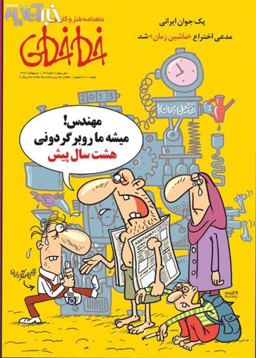 کاریکاتور روی جلد بیست و سومین شماره خط خطی، به ادعای جنجالی یک جوان ایرانی در خصوص اختراع ماشین زمان اختصاص دارد.