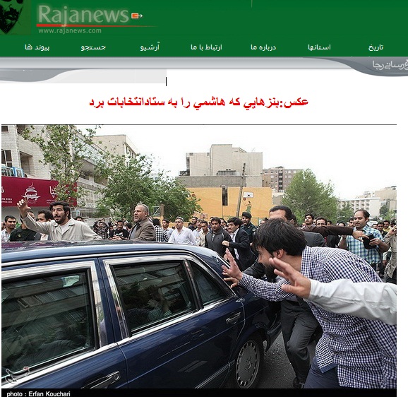 پایگاه خبری تحلیلی انتخاب (Entekhab.ir) : طی ساعات اخیر، سایت های سابقاً حامی دولت، متعلق به جبهه پایداری با انتشار تصاویر مربوط به حضور آیت الله هاشمی در ستاد انتخابات تصاویر مربوط به اتوموبیلی که او را به ستاد انتخابات آورد را برجسته کرده اند!
