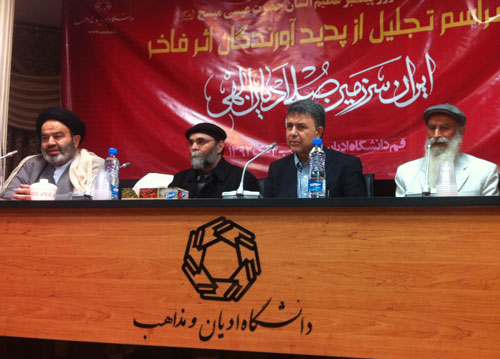حجت الاسلام نواب، رییس دانشگاه ادیان نیز در خاتمه مراسم با اعجاب انگیز خواندن این اثر گفت: باید همه تلاش کنیم که ادیان توحدی مسیری برای بهتر شدن جهان برای زندگی شوند و اگر نمی توانیم مشکلی از جهان حل کنیم، دست کم به نام دین مشکلی به دنیا نیفزاییم.