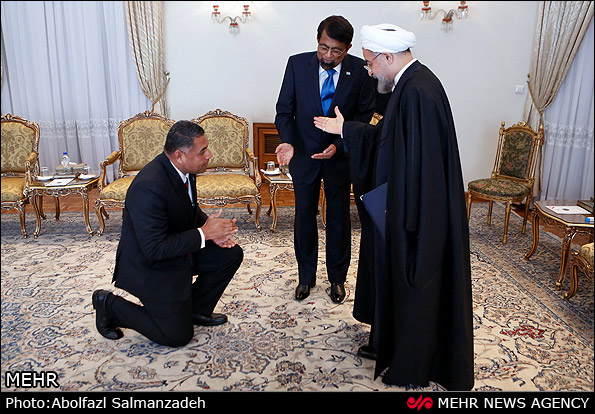 عکس/ احترام عجیب یک دیپلمات خارجی به روحانی