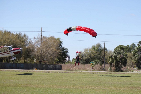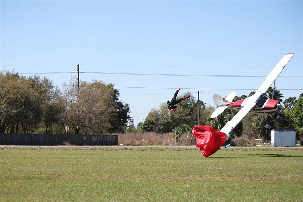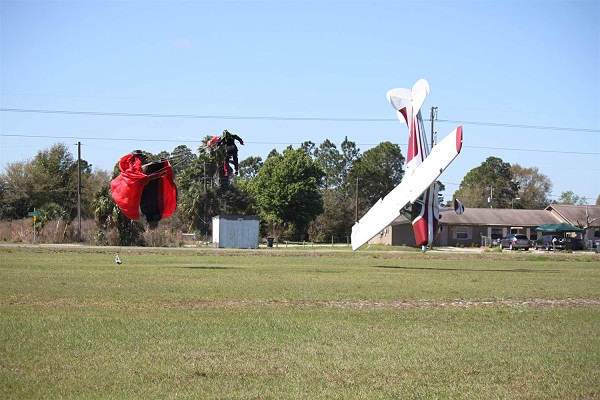 چتر باز 49 ساله امریکایی در حال تجربه یک سقوط آرام و موفق در گِینس ویل فلوریدا بود که کری الیز با هواپیمای تفریحی اش به او برخورد کرد و با سقوط هواپیما هر دو نفر راهی بیمارستان شدند.