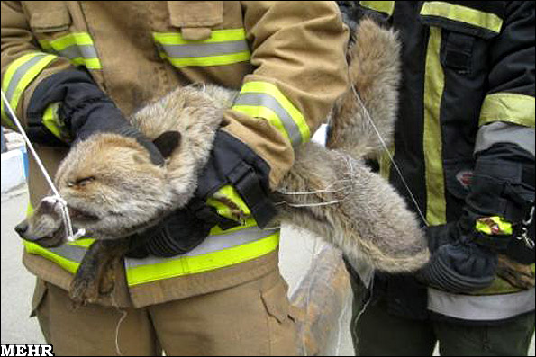آتشنشانان كه مجهز به تور و گازهای بیهوش كننده بودند در محل حادثه حضور یافته و روباه را از حیات خلوت خارج كردند.