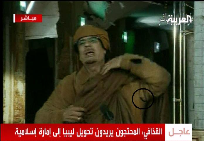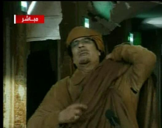 معمر قذافی رهبر لیبی در تلویزون دولتی این کشور ظاهر شد و در سخنانی که با عصبانیت و تندی همراه بود به کشورهای غربی و مخالفان تاخت و تظاهر کنندگان را به اعدام تهدید کرد.
