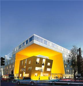 و برجسته است. بخش سه طبقه با رنگ زرد براق نورپردازی شده است. بخش