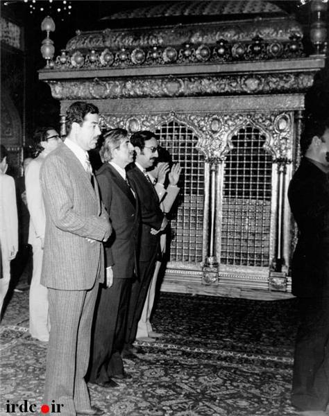 در عکس زیر که متعلق به سال 1354 است، صدام حسین (معاون رئیس جمهور عراق) در حال اقامه نماز در کنار ضریح امام رضا(ع) است.