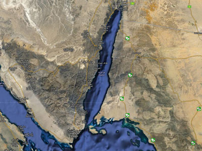 بزرگ در دریای سرخ. خلیج ایلات در شرق صحرای سینا و غرب شبه جزیره عربستان،