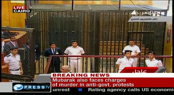 دست انتقام روزگار را ببين تا ديروز بدستور مبارك مخالفينش در اينچنين قفسهايي محاكمه مي شدند امروز خودش در يكي از آنها گرفتار وبايد جوابگوي اعمال خود باشد !!! "فاعتبروا يا اولي الابصار " !!!!!!!!