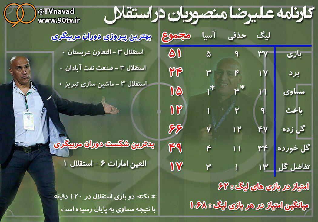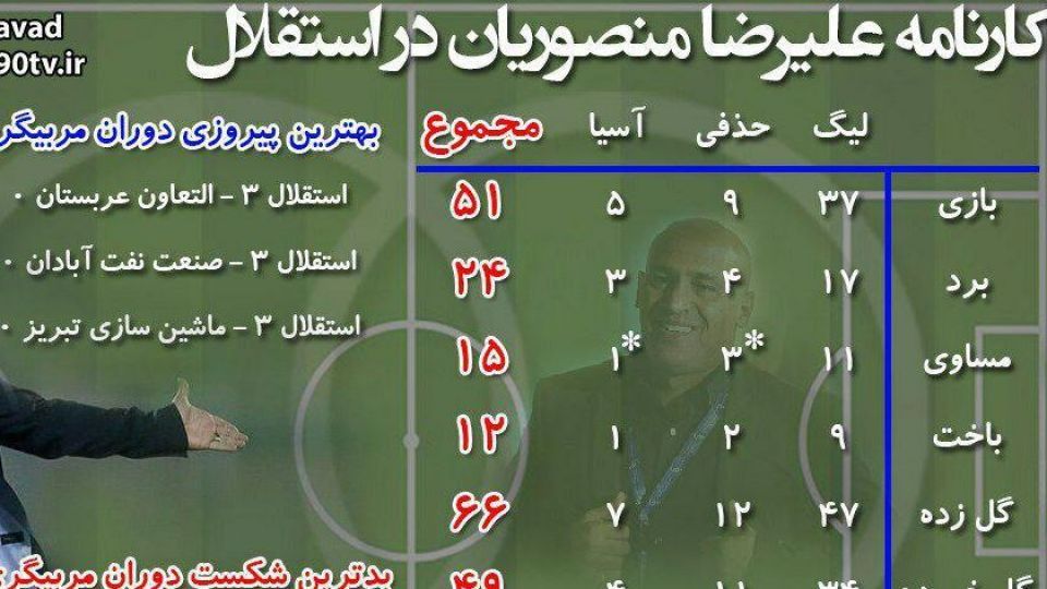 اينفوگرافی/ کارنامه علیرضا منصوریان در استقلال