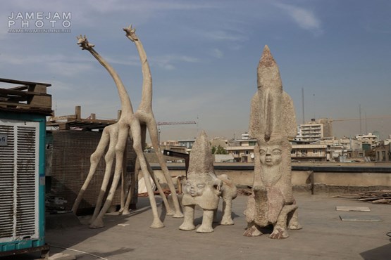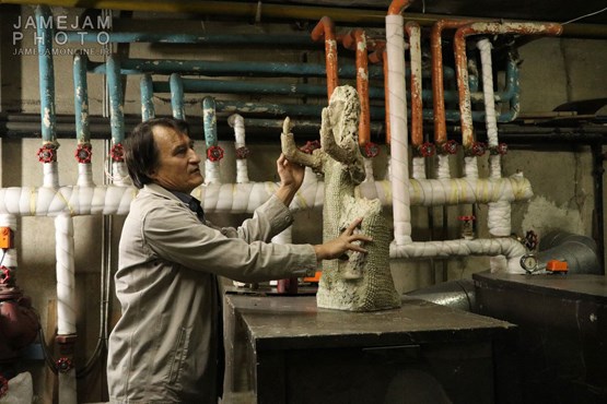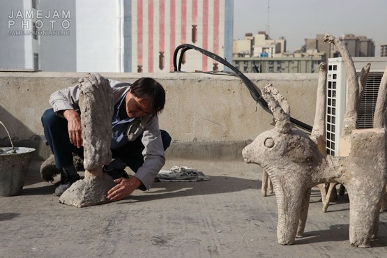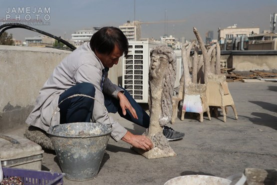 اگر تابستان باشد که روی پشت بام همین ساختمان مجسمه می سازم و خمیرها هم زیر آفتاب زود خشک می شوند. اما وقتی هوا سرد می شود می آییم همینجا داخل موتورخانه.