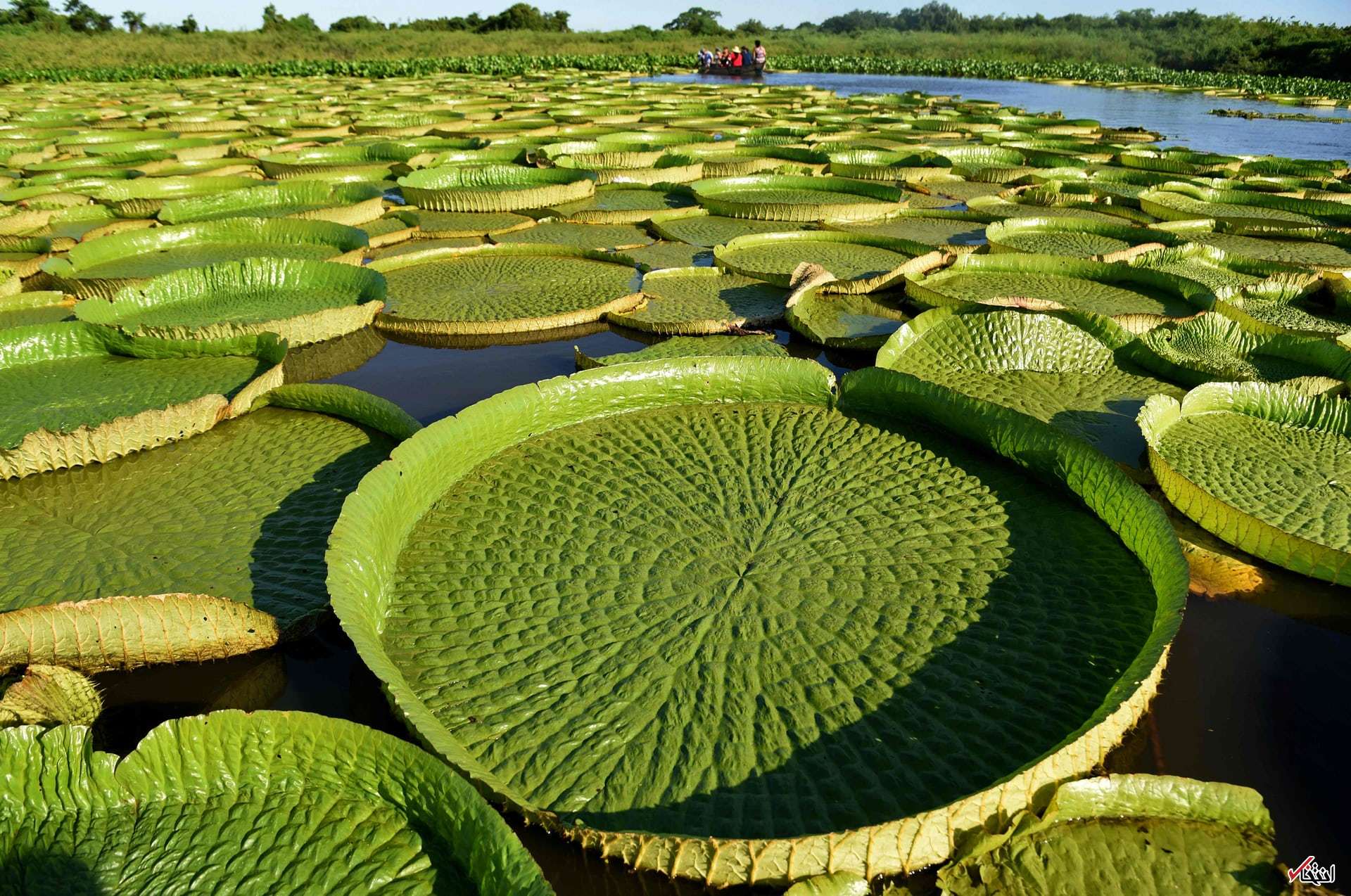 نمایی از نیلوفرهای آبی بزرگ در دریاچه ای در پاراگوئه