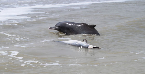 آن ها در ساحل دلفين مادر و بچه اي را ديدند. نخست تصور کردند که مادر و کودکش در حال بازي هستند اما بي حرکت بودن بچه دلفين داستان غم انگيزي داشت.