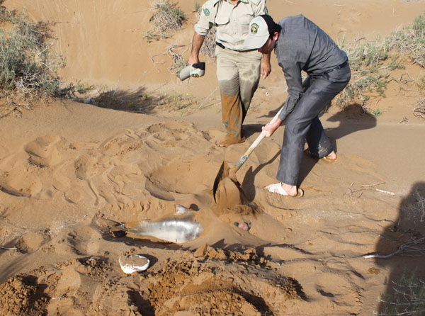 نيرو هاي محيط زيست به منظور جلوگيري از حوادث ناگوار بعدي و مرگ احتمالي مادر دلفين در کنار ساحل و سردرگمي و به گل نشستن دلفين مادر، لاشه را از آب خارج و پس از انجام عمليات زيست سنجي و مستندسازي در جزاير دارا دفن کردند و با اين اقدام دلفين مادر از ساحل دور شد و از گل گرفتگي نجات يافت.