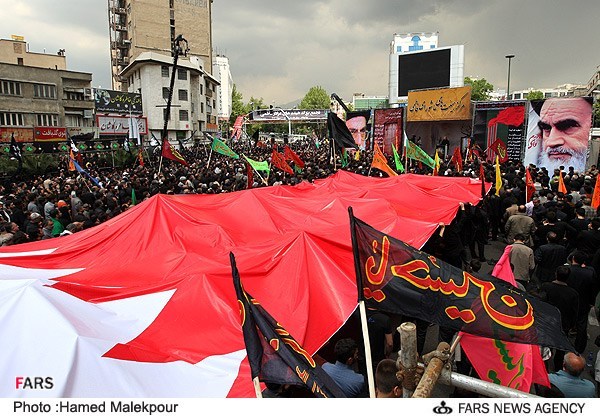 حسین الله کرم بود که جمعی از افراد حاضر در مراسم که پرچم بزرگی از بحرین