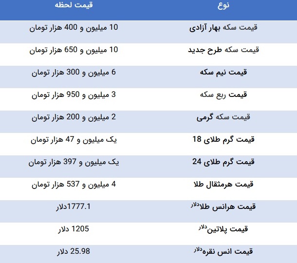 گفتنی است، به دلیل موج جدید کرونا و اعلام شرایط قرمز در تهران، بازار طلا و جواهر تهران نیز به مدت ۲ هفته تعطیل اعلام شده است؛ قیمتهای درج شده در این خبر نیز با استناد به نرخهای اعلامی از سوی اتحادیه طلا و جواهر است.