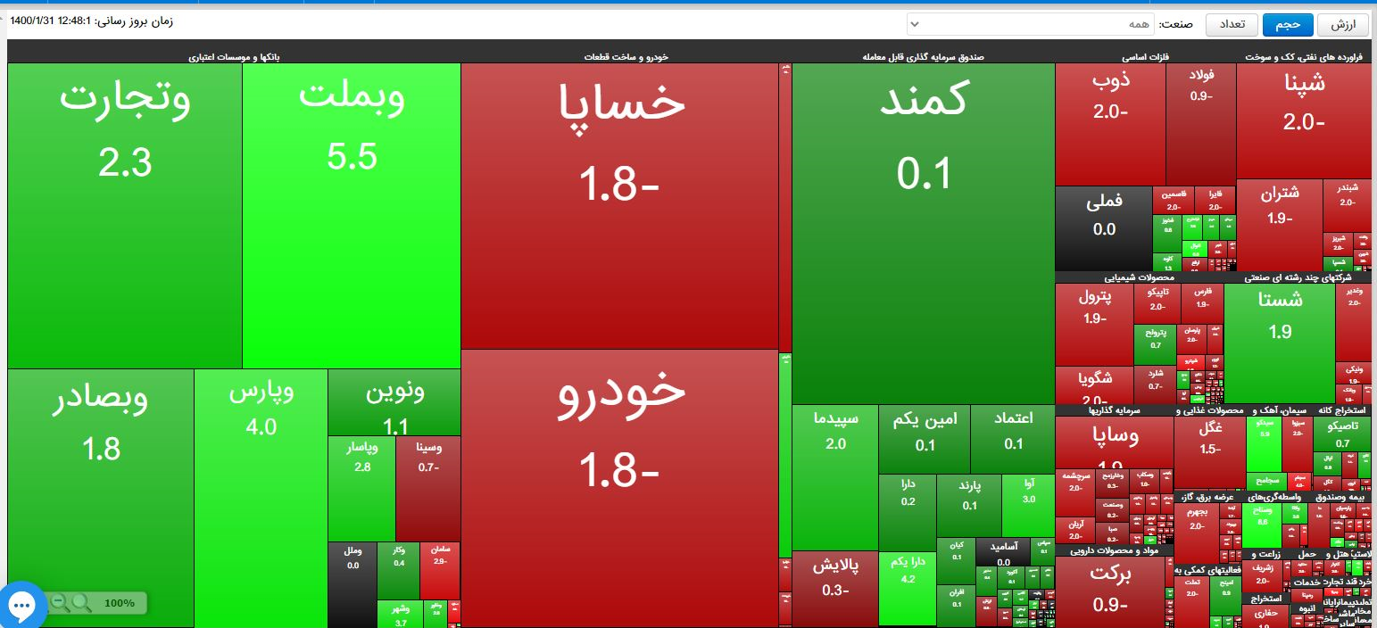 ارزش بازار در بورس تهران به بیش از ۴ میلیون و ۸۶۹ هزار میلیارد تومان رسید. امروز معامله گران در بورس تهران بیش از ۵.۶ میلیارد سهام، حق تقدم و اوراق مالی در قالب ۴۲۰ هزار نوبت معامله و به ارزش ۴۵۰۴ میلیارد تومان داد و ستد کردند. اگر ارزش معاملات امروز فرابورس را هم در نظر بگیریم که به بیش از ۵۰۰۱ میلیارد تومان رسیده بود، در نتیجه ارزش معاملات امروز بورس و فرابورس به بیش از ۹۵۰۵ میلیارد تومان رسیده است.