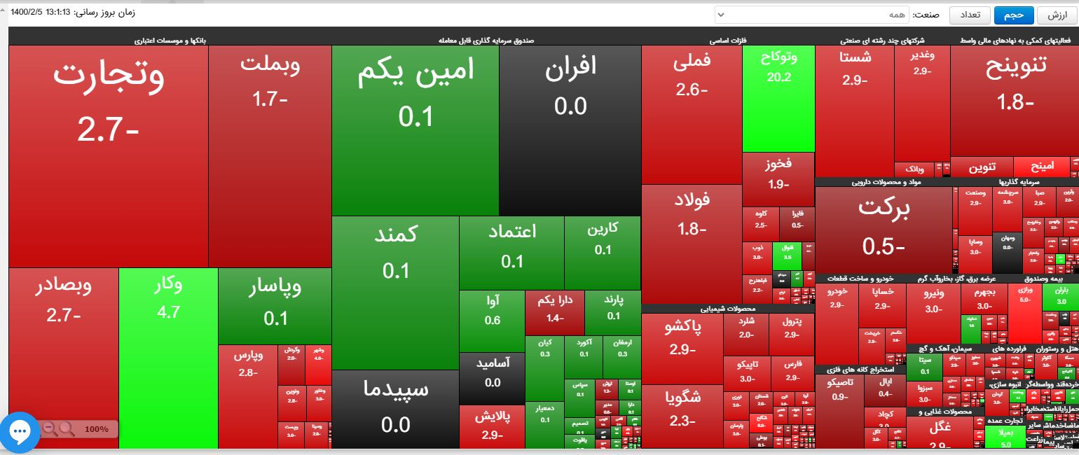 نماد‌های پرتراکنش در بورس تهران شامل دارویی برکت، صنایع ملی مس ایران، سرمایه‌گذاری تأمین اجتماعی، فولاد مبارکه، بانک تجارت، بانک ملت و معدنی اپال کانی پارس بوده‌اند.