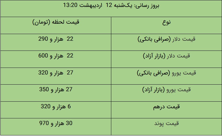 نرخ خرید و فروش دلار و یورو در صرافیهای بانکی و بازار متشکل ارزی متغیر است و متناسب با نوسانات بازار آزاد در طول روز چند بار تغییر میکند.