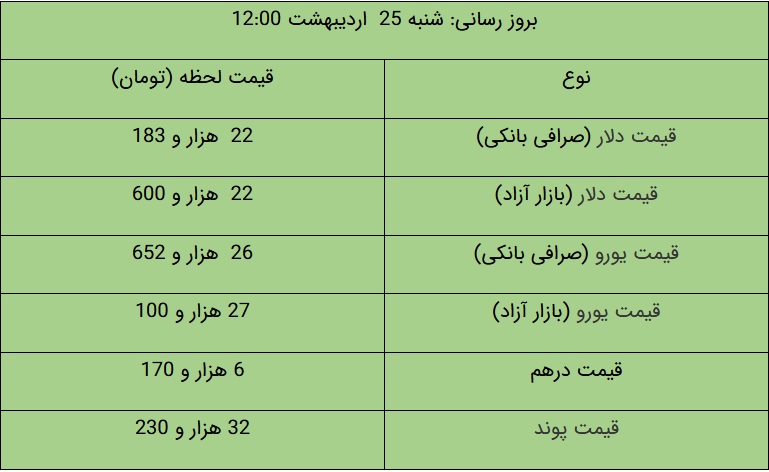 نرخ خرید و فروش دلار و یورو در صرافیهای بانکی و بازار متشکل ارزی متغیر است و متناسب با نوسانات بازار آزاد در طول روز چند بار تغییر میکند.