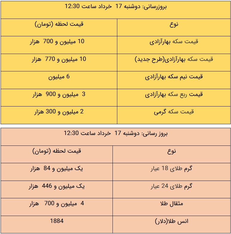 قیمت طلا و سکه، امروز ۱۷ خرداد ۱۴۰۰