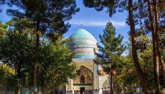 اصل بنای قدمگاه از صفوی است. گنبد قشنگی ساختهاند. کاشی بسیار خوبی دارد. دو جای پا در سنگ سیاه نقش شده است، در بالای دیوار کار گذاشتهاند که مردم زیارت میکنند. چشمهای که حضرت درآورده است چسبیده به قدمگاه، در بیرون چهارطاقی کوچکی ساختهاند، پله میخورد میرود پایین. حوض کوچکی دارد. چشمه هم آنجا است. از پهلوی حوض از مَغاری [غار] بیرون میآید. بسیار آب صافی دارد. اصل گنبدِ قدمگاه خراب شده است، یعنی روی گنبد و بیرون هزارهها [۲] و غیره. انشاءالله باید تعمیر شود. اصل بنای گنبد در حقیقت سردر و عمارت باغ واقع شده است، بعد از آن مرتبه مرتبه میرود تا پایین باغ. سابقا خیابان از کاج و غیره بوده است، حال هم کاجها و غیره هستند.