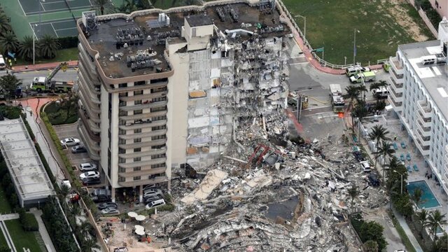 مقامات رسمی در آمریکا در حالی از افزایش شمار تلفات حادثه فرو ریختن بخش هایی از یک ساختمان ۱۲ طبقه در شهر میامیِ ایالت فلوریدا خبر می دهند که نیروهای امداد برای چهارمین روز متوالی است که در میان آوار در تلاش برای نجات دادن مفقودشدگان این حادثه هستند.