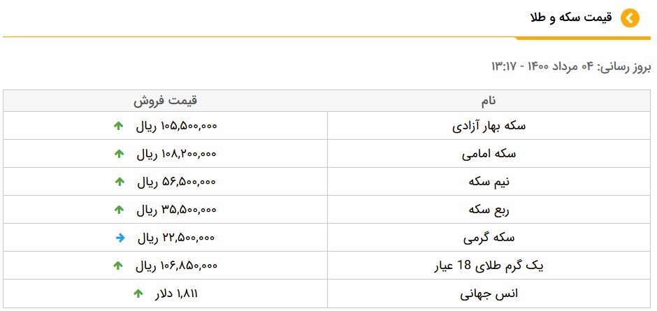 قیمت سکه و طلا، امروز ۴ مرداد ۱۴۰۰