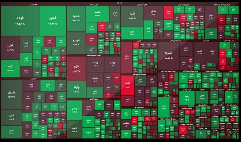 نماد‌های فولاد، فارس، پارس و فخوز بیشترین تاثیر را در رشد شاخص کل داشتند.