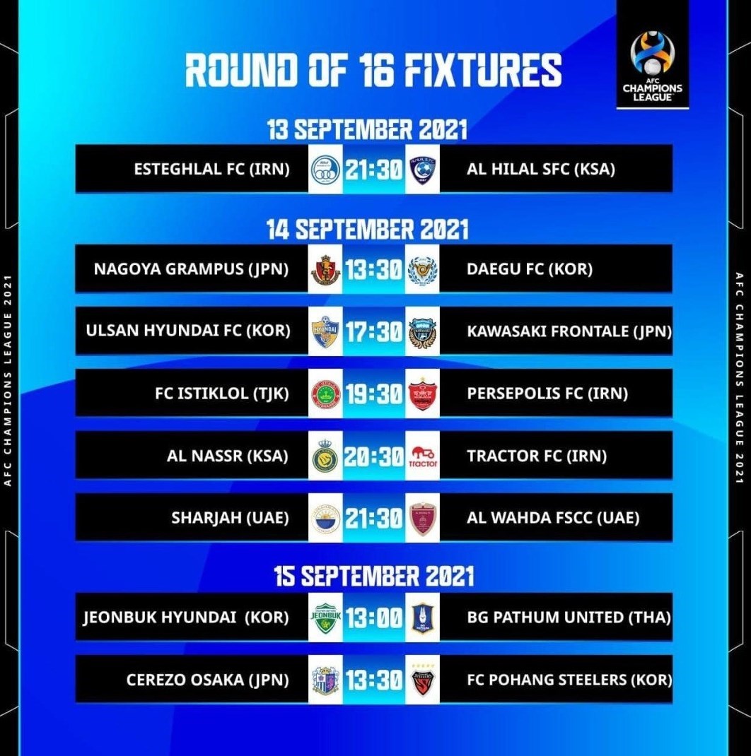 طبق برنامه استقلال ایران و الهلال عربستان روز ۱۳ سپتامبر (دوشنبه ۲۲ شهریور) در ورزشگاه الوصل امارات و از ساعت ۲۱:۳۰ به مصاف هم میروند. یک روز بعد یعنی ۱۴ سپتامبر (۲۳ شهریور) نیز پرسپولیس ایران در دوشنبه و ورزشگاه جمهوری مرکزی میهمان استقلال تاجیکستان است که این دیدار از ساعت ۱۹:۳۰ برگزار خواهد شد. دیدار تراکتور ایران مقابل النصر عربستان هم که ۲۳ شهریور در ورزشگاه جاسم بنحمد دوحه قطر برگزار خواهد شد از ساعت ۲۰:۳۰ آغاز میشود.