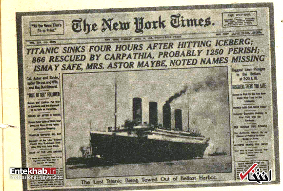ساعت یک و بیست دقیقهی بعد از نیمهشب یکشنبه ۱۴ آوریل ۱۹۱۲ [۲۵ فروردین ۱۲۹۱] روزنامهی نیویورکتایمز مانند همیشه در آسمانخراش بزرگ خود برای چاپ آماده میشد ولی خبر مهمی جز دو قتل و همچنین مبارزهی سیاسی بین تافت و روزولت و فروریختن کلیسا به روی دو نفر در آن دیده نمیشد.