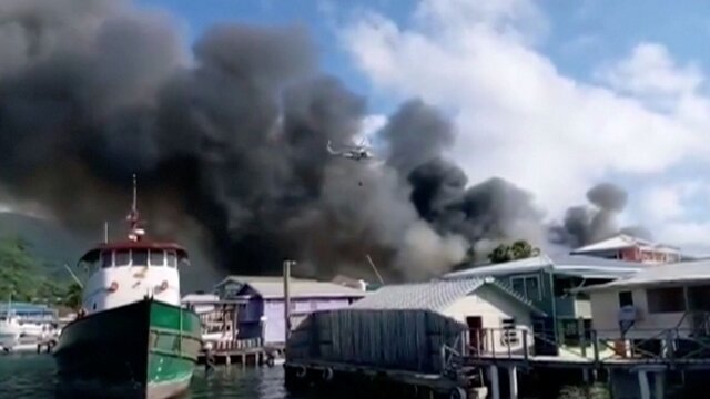 آتش سوزی مهیب در جزیره گواناجا، یکی از جزایر تفریحی کارائیب واقع در کشور هُندوراس در آمریکای مرکزی، خسارات زیادی به بار آورد.