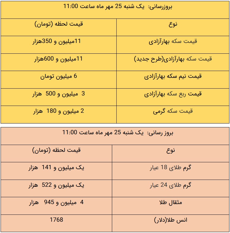 تسنیم: هماکنون در بازار داخلی، قیمت طلای ۱۸ عیار هر گرم یک میلیون و ۱۴۱ هزار تومان، قیمت سکه تمامبهار آزادی طرح جدید ۱۱ میلیون و ۶۰۰ هزار تومان و قیمت سکه تمامبهار آزادی طرح قدیم نیز ۱۱ میلیون و ۳۵۰ هزار تومان است.