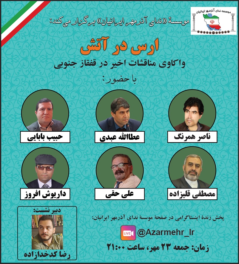 جمعه 23 مهرماه سالجاری برنامهای با عنوان «ارس در آتش؛ واکاوی مناقشات اخیر در قفقاز» با حضور کارشناسان این حوزه به همت موسسۀ «ندای آذرمهر ایرانیان» برگزار شد. دکتر عطاالله عبدی -دانشیار گروه آموزشی جغرافیای سیاسی دانشگاه خوارزمی- یکی از سخنرانان این برنامۀ تخصصی بود که مشروح سخنان وی در ادامه میآید:
