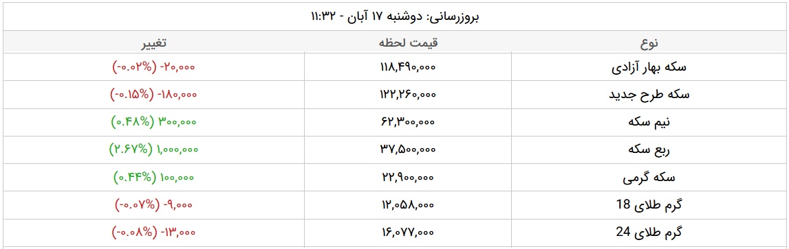 قیمت سکه و طلا، امروز ۱۷ آبان ۱۴۰۰