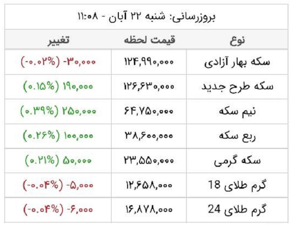 قیمت طلا و سکه، امروز ۲۲ آبان ۱۴۰۰