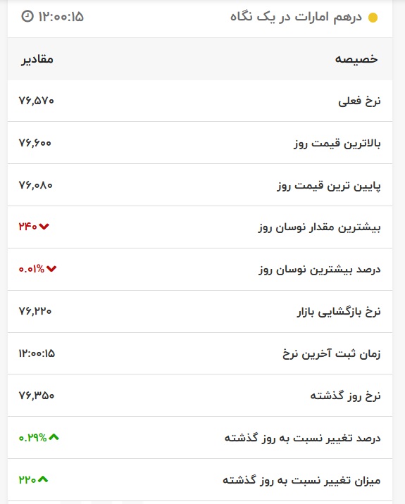 قیمت درهم امارات، امروز ۲۵ آبان ۱۴۰۰