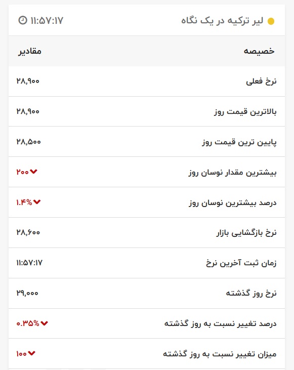 قیمت لیر ترکیه، امروز ۲۵ آبان ۱۴۰۰