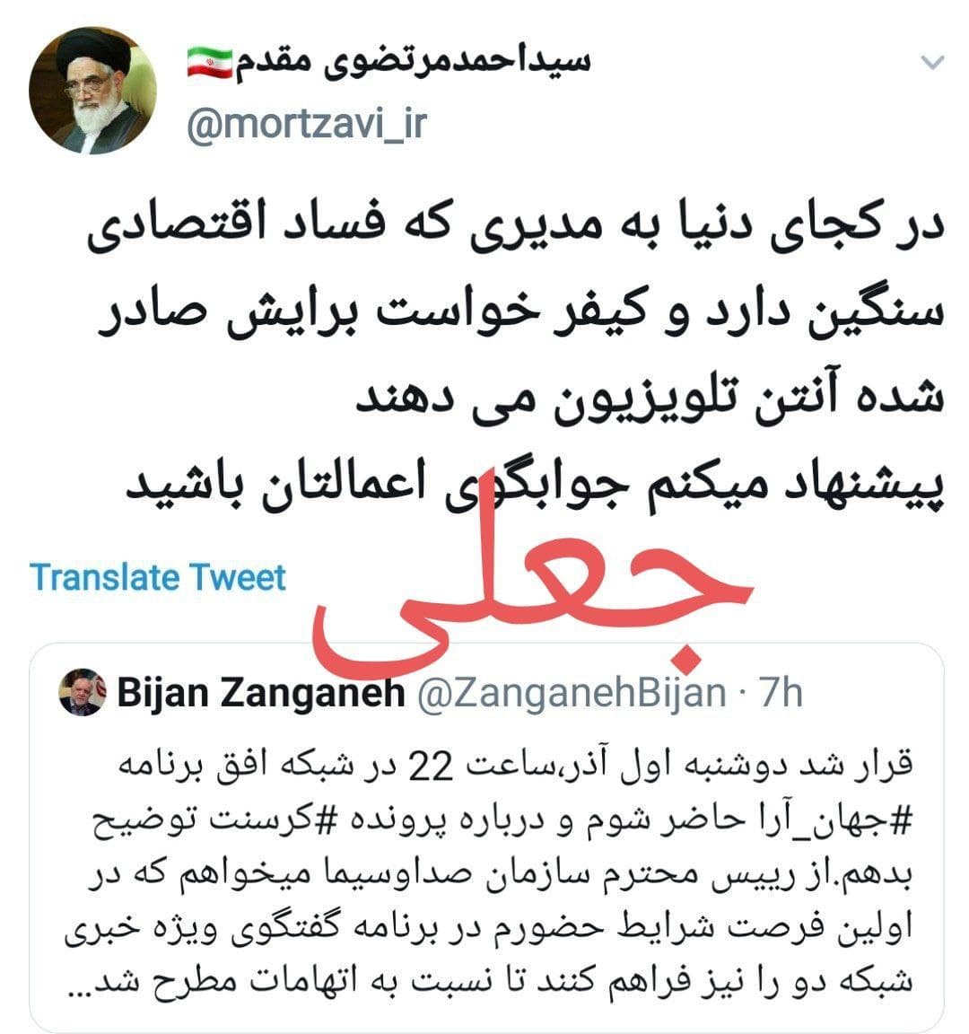 طبق پیگیری خبرنگار «انتخاب»، اکانت منتسب به حجت الاسلام مرتضوی مقدم جعلی است.