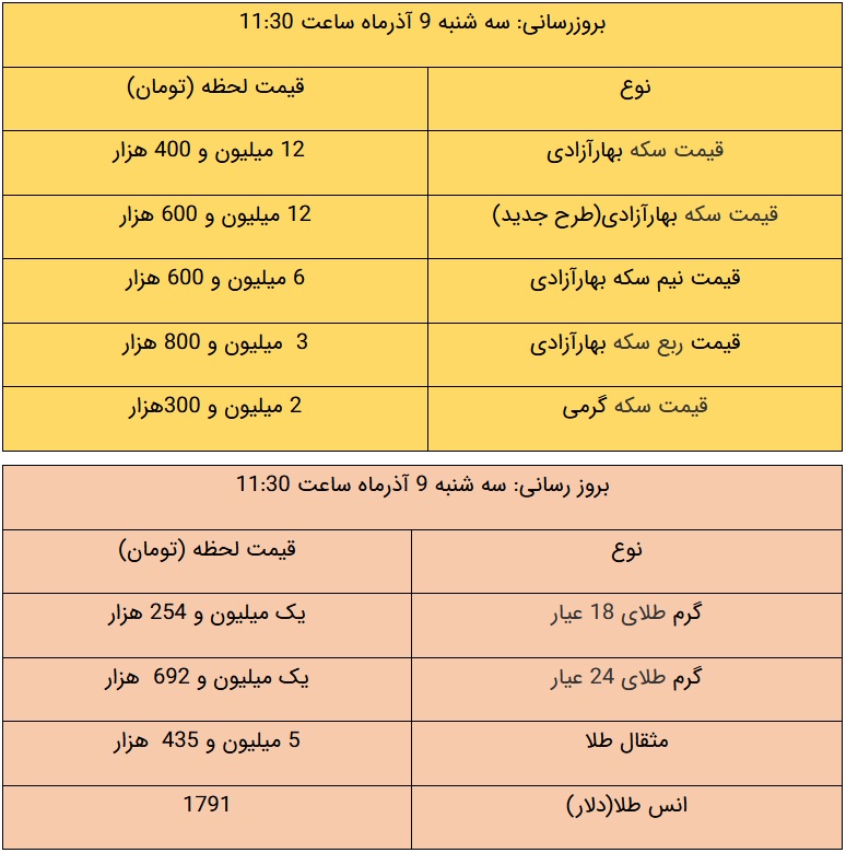 قیمت طلای ۲۴ عیار در هر گرم یک میلیون و ۶۹۲ هزار تومان و هر مثقال طلا، ۵ میلیون و ۴۳۵ هزار تومان ارزشگذاری شده است.