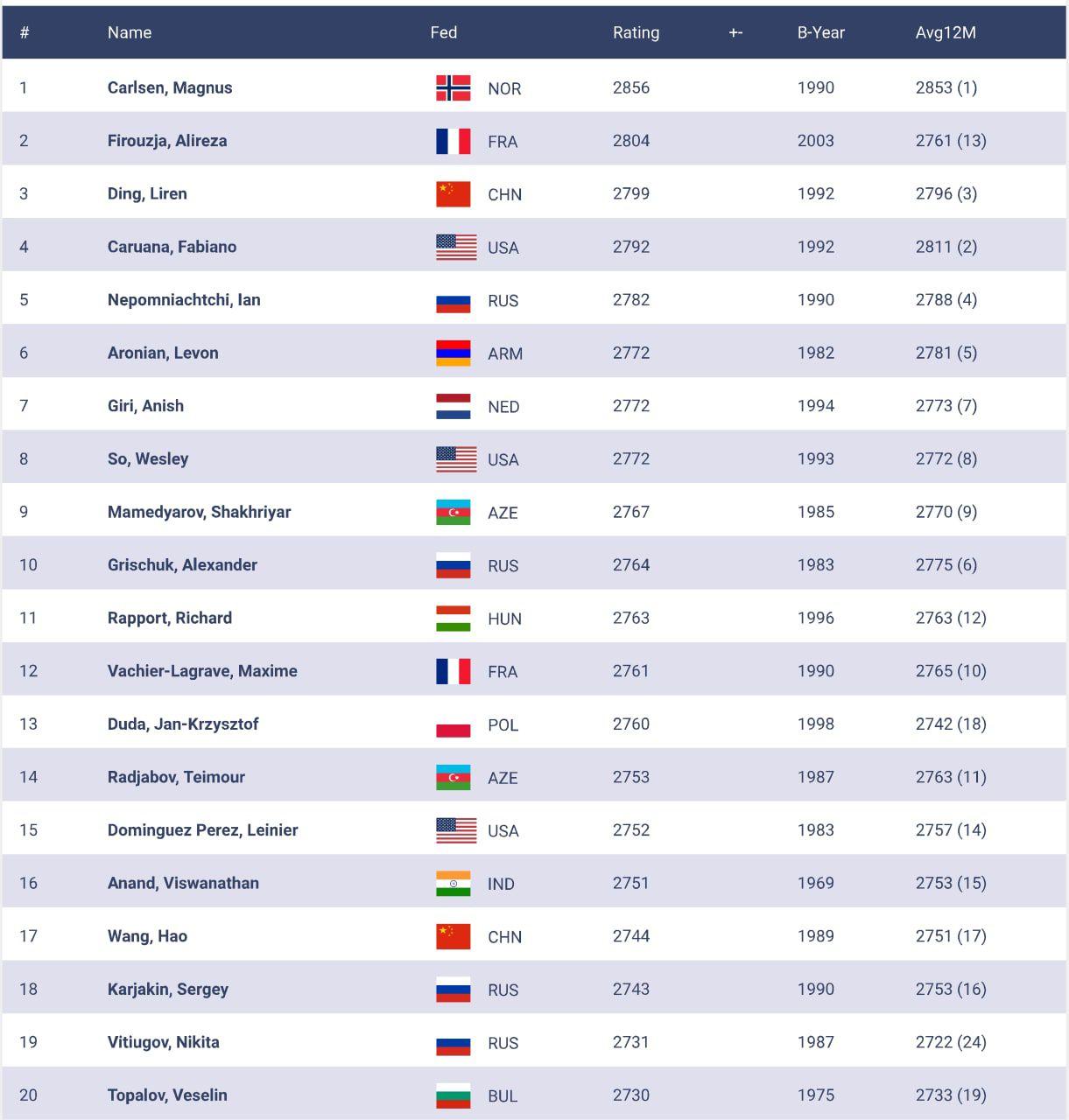 ورزش سه: فیروز جا که در لایو ریتینگ به درجه ۲۸۰۴رسیده بود ،حالا در جایگاه دوم جهان نشسته است.