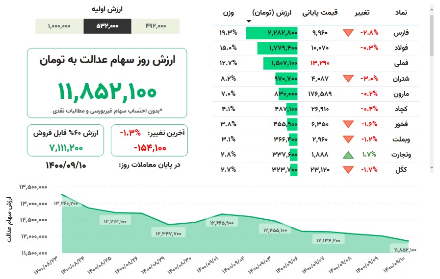 اقتصادآنلاین: ارزش سهام عدالت، ۱.۳درصد کاهش یافت.