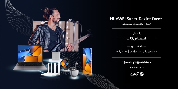 رویداد بزرگ سوپر دیوایس هوآوی در تاریخ 15 آذر ساعت 20 از پلتفرم آپارات پخش شد که در کنار بخشهای فنی مراسم، هنرمند محبوب کشور، امیرعباس گلاب نیز به اجرای برنامه پرداخت. در ادامه با یکدیگر مروری خواهیم داشت بر آنچه در این رویداد گذشت.