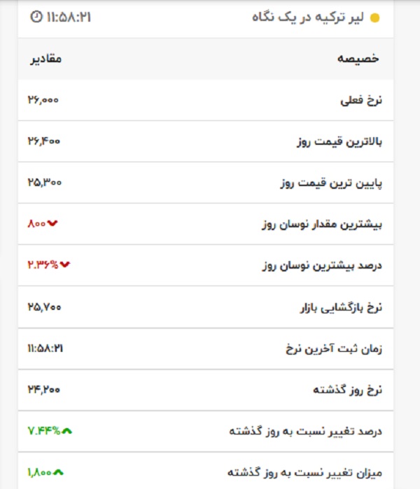 قیمت لیر ترکیه، امروز ۲ دی ۱۴۰۰