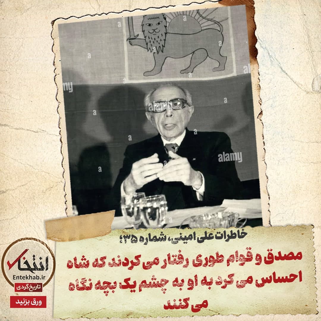 خاطرات علی امینی، شماره ۳۵: مصدق و قوام طوری رفتار میکردند که شاه احساس میکرد به او به چشم یک بچه نگاه میکنند