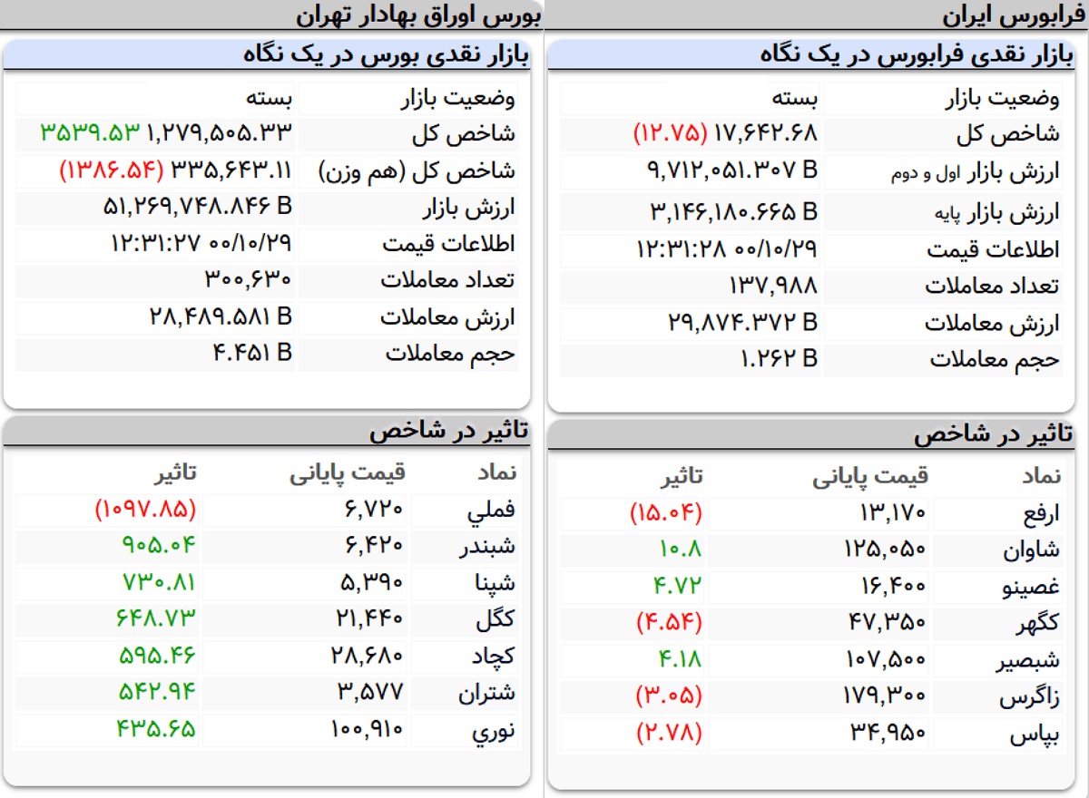 در فرابورس نیز شاخص با کاهش ۱۲ واحدی به عدد ۱۷ هزار واحد رسید.