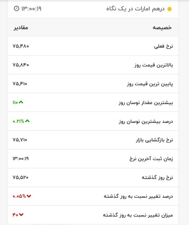 قیمت درهم امارات، امروز ۲ بهمن ۱۴۰۰