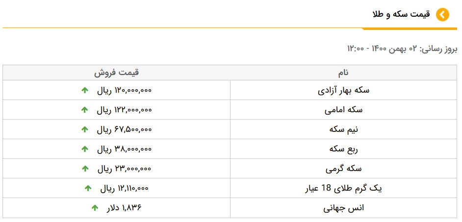 وی گفت: هر مثقال طلا ۵ میلیون و ۲۵۰ هزار تومان و هر گرم طلای ۱۸ عیار ۱ میلیون و ۲۱۱ هزار تومان فروخته شده است.