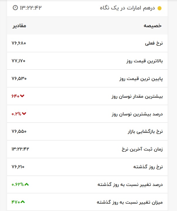 قیمت درهم امارات، امروز ۶ بهمن ۱۴۰۰