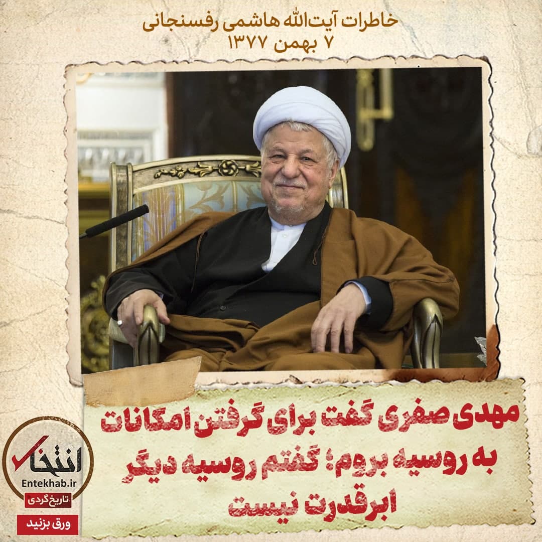 در خاطرات آیت الله هاشمی رفسنجانی در ۷ بهمن ۱۳۷۷ آمده است: