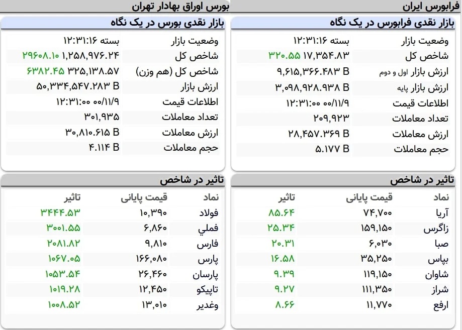 در آن سوی بازار سرمایه شاخص کل فرابورس هم توانست با ۳۲۰ واحد افزایش به رقم ۱۷ هزار و ۳۵۴ واحد برسد.