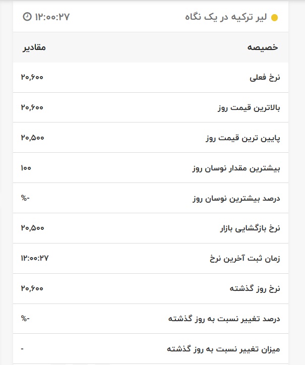 قیمت لیر ترکیه، امروز ۱۰ بهمن ۱۴۰۰